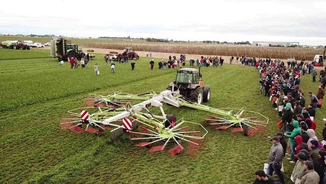 Según detalló Sánchez en Oncativo, en una nueva Experiencia Forrajera, organizada por Claas y con la participación de otras empresas, en Oncativo, Córdoba, “el megafardo permite henificar un 45% más de forraje, lo que representa 250 kilos por cada metro cúbico. El rollo alberga entre 150 y 180 kilos por metro cúbico. “La mayor densidad del megafardo tiene ventajas logísticas. Además, la megaenfardadora tiene más cuchillas y permite picar más chico. En cuanto a la humedad, en el rollo empezamos a trabajar con un 20% de humedad y en el megafardo se necesita un 17% porque es mucho más denso”, explicó.