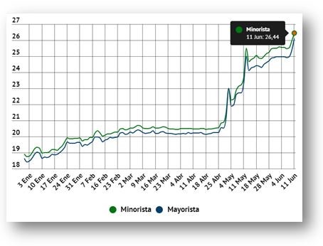 Y desde el 25 de abril, las tendencias entre el mercado doméstico y el de Chicago se alejan una de otra, dada la crisis cambiaria.