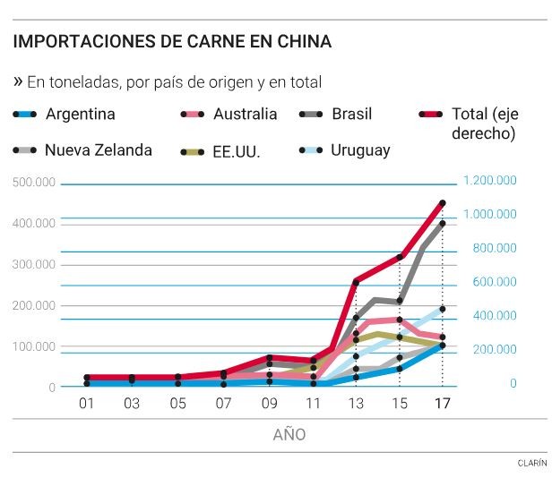 Nuestra carne puede jugar esta liga si se lo propone. En estos días hay dos logros que deberían cambiar la historia, con un impacto semejante al del barco frigorífico que abrió el mercado europeo, son las aperturas de China y Japón. Es el momento de apostar a este nuevo consumidor con nuestra calidad, pero agregando trazabilidad, empaquetando en envases de tamaño y calidad que puedan ser vendidos vía web, sería nuestra carne boutique. No es fácil, pero tenemos muchos elementos a favor En carnes, China paso de un papel irrelevante en el comercio mundial a ser el primer importador, en solo una década pasó de unas 100 mil a 1,1 millón de toneladas totales, ¡multiplicó por 11! . Hoy, ya es nuestro principal comprador, pero a Uruguay le compra el doble y a Brasil cuatro veces más. Y si bien es verdad que la mayoría de lo importado es congelado y cortes no tan valiosos, en estos 10 años se triplicó la demanda de cortes refrigerados de calidad y se pasó de importar 5.000 a 15.000 toneladas casi todas desde Australia. Mi hipótesis es que con los cambios sociales que se están generando muy pronto despegará también esta importación, algo desfasada de los congelados, pero ocurrirá en pocos años.