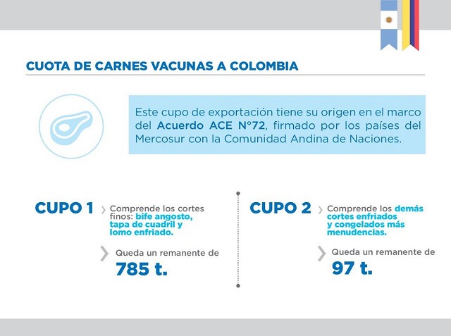 Marisa Bircher, Secretaria de Mercados Agroindustriales, informó a través de su cuenta de Twitter que aún queda saldo sin distribuir de la Cuota de Carnes Vacunas a Colombia. Cabe destacar, que dicha cuota puede ser utilizada a arancel preferencial.