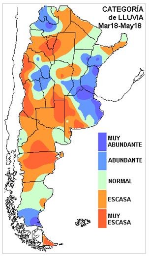En la configuración que muestra el mapa, también se destaca como el trimestre de otoño dejo deficiencias pluviales en una vasta zona mediterránea que va desde el sudoeste de CB hasta el sudoeste de BA, con algunas excepciones en áreas reducidas. También se observaron lluvias pobres en el extremo noreste de la Mesopotamia y en las áreas productivas del NOA.