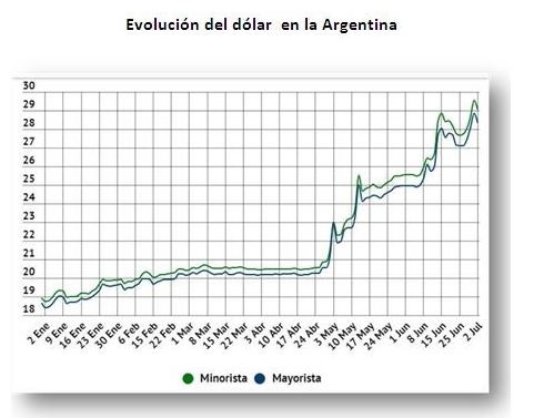 Sin embargo, no resulta fácil advertir ello por el comportamiento del tipo de cambio en nuestro país. Desde el 23/24 de abril pasado, el dólar viene recorriendo una suba estrepitosa que permite en términos nominales una pendiente a la suba en los precios internos.