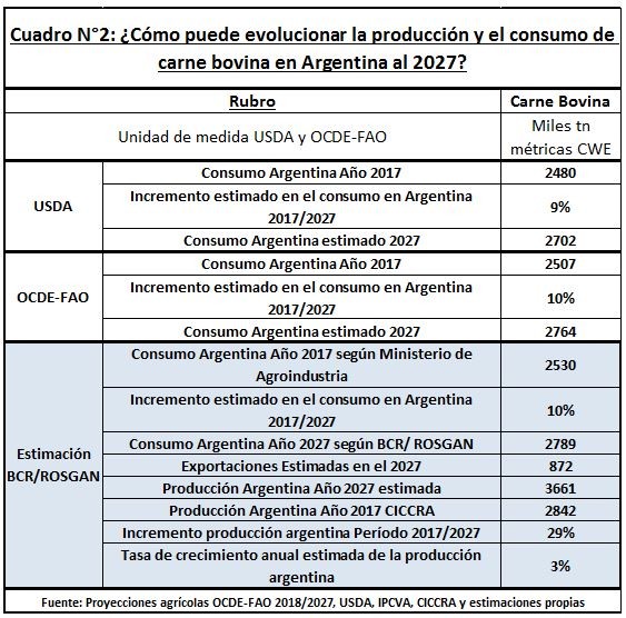 el USDA y la OCDE-FAO para el consumo argentino en los próximos 10 años.