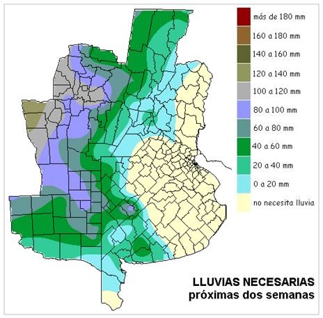 Partiendo del estado actual de humedad, puede estimarse cuál es la demanda de precipitaciones para alcanzar o conservar un estado adecuado de humedad para el desarrollo de los cultivos de invierno y es aquí donde comienzan a resaltar las diferentes demandas, remarcándose el patrón este oeste como principal configuración de las necesidades hídricas.