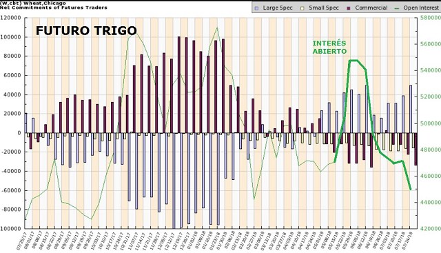 Tomando como referencia el contrato de Chicago con mayor negociación del momento, que es el de vencimiento septiembre/18, el avance de las últimas dos semanas ha llevado el precio desde niveles mínimos de 471.25 centavos de dólar por bushell, hacia máximos de 553 centavos.
