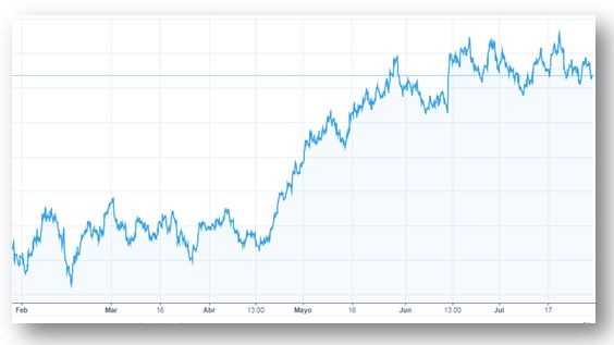 Una buena nueva es la que viene de las expectativas sobre la tasa de interés en EE.UU. Los analistas creen que la tasa de interés no subirá en los próximos días. Se espera que sí lo haga recién en septiembre. Todo indica que, de no mediar una sorpresa, la tasa seguirá en el rango de entre el 1,75 % y el 2 %, dada la confianza en el buen rumbo de la economía nacional.