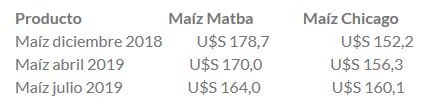 Como verás hay una gran brecha en diciembre, en Estados Unidos está la presión de la cosecha, y en Argentina estamos lejos de la cosecha ya que se levanta en abril de 2019 un 30%, y el 70% restante en julio de 2019. Para abril y julio, los precios lucen muy buenos, pero podríamos esperar valores cercanos a los U$S 180 la tonelada, que serían precios óptimos para ir asegurando precio.