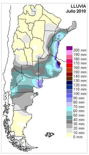 Esto último es un ejemplo que los sistemas precipitantes se generan a partir de la disponibilidad de humedad y de los mecanismos de inestabilidad. Los frentes llegaron sin energía al extremo noreste del país y las lluvias respondieron con milimetrajes escasos. Hacia el NOA, estamos en plena estación seca, con lo cual cualquier lluvia es bienvenida. En un somero resumen, podemos decir que las lluvias favorables, algo excesivas en sectores del este y marcando fuerte el retroceso en CB, pero en general respetando la distribución que uno puede esperar en el mes de julio.