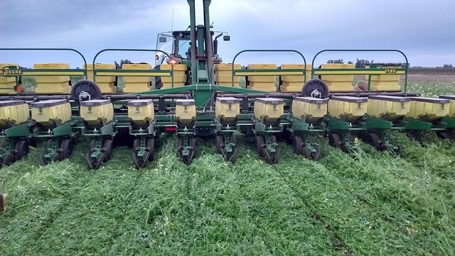 Así, han llegado a tener un cultivo vivo permanente durante todo un ciclo y más. Sobre la soja de segunda se siembra la vicia, que está nacida antes de la cosecha de la oleaginosa. A su vez, sobre vicia viva se siembra maíz y luego se mata la vicia con un rolo.
