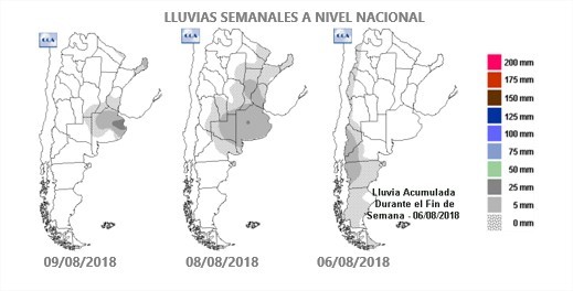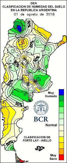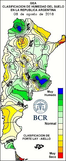 Se realizó un ajuste a la suba del área sembrada del trigo 2018/2019 con 1,45 M de ha implantadas. Es un año excelente para el trigo con muchos factores a favor: los precios, la posibilidad de emplear la mejor tecnología disponible y las buenas reservas hídricas con las que empezó el ciclo. Se suman nuevos aportes de agua semana a semana y las marcas térmicas invernales están por debajo de las medias históricas. En las últimas 24 horas hubo nuevas lluvias. Se tratan de lluvias débiles pero muy persistentes como ha ocurrido en el resto de la semana. Estos eventos se han enfocado en el norte bonaerense. General Pinto marca de esta forma un total semanal de 42 mm. Le sigue Lincoln con 23 mm. El resto de la región promedió acumulados entre 5 y 10 mm. De esta manera, se reforzaron las reservas de agua de los horizontes superficiales del suelo. No sucedió lo mismo en el este cordobés, allí el nivel de reservas es regular.