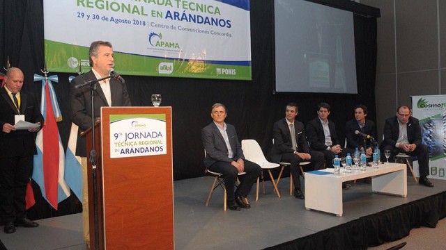 El ministro de Agroindustria, Luis Miguel Etchevehere, encabezó el acto de inauguración de la 9na. Jornada Técnica Regional en Arándanos que se desarrolla del 29 al 30 de agosto en la ciudad de Concordia, Entre Ríos, con el objetivo de generar nuevas oportunidades comerciales para el sector.