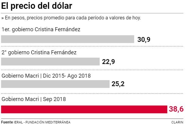 A valores de hoy, agrega el trabajo, el tipo de cambio en el primer período de Cristina Kirchner estaba a $30,9. Pero en el segundo mandato se apreció y bajó a $22,9. Con Macri aumentó ($25,2), aunque nunca a los niveles que había alcanzado en 2007-2011. Tras la devaluación de agosto, cuando el dólar pasó de $28 a $38, la competitividad pegó un salto.