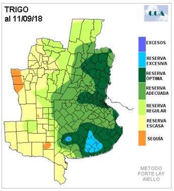 Con las lluvias del último fin de semana las reservas par trigo se afianzan en niveles óptimos, con zonas donde la humedad se ha vuelto temporariamente excesiva. El ambiente húmedo queda a la espera de nuevas precipitaciones que en las próximas jornadas deberían seguir sumando algunos milímetros, perfilando el acumulado de la zona hacia un comportamiento normal para el resto del mes.