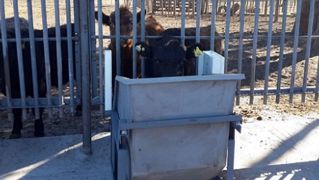 Garro informó que estos determinan el consumo individual de cada animal, y para ello “en Tandil hemos construido ocho comederos, distribuidos en dos corrales, explicó Garro. Y continuó: “cada corral tiene cuatro comederos. Hoy con ellos se lleva una evaluación del consumo de 43 toros. Cada comedero lleva una antena que lee las caravanas electrónicas, y cada toro lleva una caravana con un número único. Entonces, cuando el animal mete la cabeza para comer, la antena lo identifica y una balanza pesa el alimento que consume el animal, de manera tal que se puede armar un registro de lo que consume el toro durante el tiempo que estuvo en el comedero”, desarrolló.