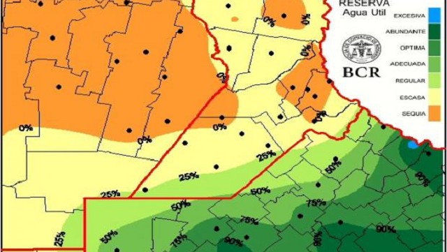 Se estima entre un 10 a un 15% menos, respecto al rendimiento promedio de las ultimas 5 campañas. El descenso seguirá si no llueve en los próximos 10 días. El 5% de los cuadros está en condiciones regulares y los que se clasificaban como muy buenos descendieron 10 puntos; ahora ocupan el 55% del área.