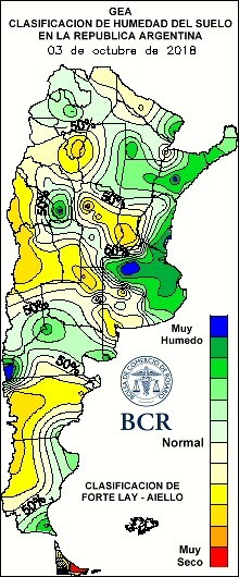 A pesar de que se sembraron 350 mil hectáreas este año, la producción apenas alcanzaría los 5,13 Mt, contra los 4,97 de la campaña pasada. Con 8,3 quintales menos de rinde que en el 2017/2018, la posibilidad del repechaje ante la sequía del verano se evapora por otro episodio de falta de agua. Un 30% de los trigos de la región está comenzando el llenado de granos. Gran parte de ellos están ubicados en el centro-sur de Santa Fe y este de Córdoba, las áreas con menores reservas de agua de la región. La necesidad de agua es inminente. La escasez tambien deja vulnerables a los cuadros que vienen detrás, cómo el 40% que está en espigazón y floración, y a los más atrasados que tienen la espiga embuchada, el 30% restante. Tras las heladas y sin el auxilio del agua, en esta semana los cuadros en malas condiciones ocupan el 15% del área, los regulares el 25%. Los daños por las heladas en el sudeste de Córdoba fueron de tal magnitud, que se está evaluando en pasar un desecante para sembrarlos con soja de primera.