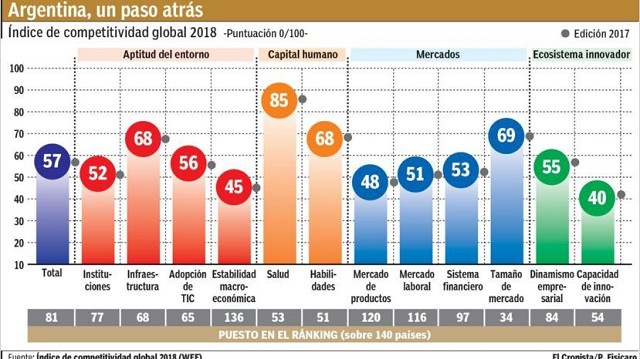 La Argentina cayó al puesto 81° en el Ranking de Competitividad Global