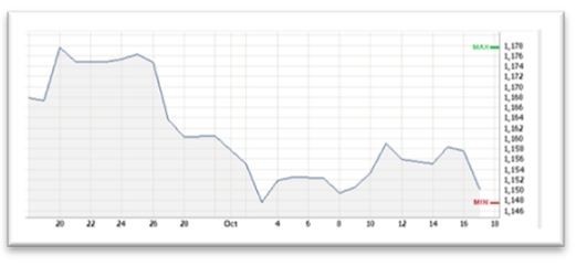 De hecho esta suba ya viene registrándose. El gráfico muestra cómo, a lo largo de los últimos treinta días, se necesitan menos dólares para compra un euro.