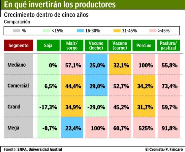 El estudio, que se desarrolla cada cuatro años y va por su tercera edición, se basó en entrevistas personales a 800 productores en las provincias de Buenos Aires, Córdoba, Santa Fe y Entre Ríos. Y trazó una radiografía de los productores de la Pampa Húmeda, a los que dividió en “medianos” (entre 300 y 600 hectáreas en producción); “comerciales” (de 600 a 1800 hectáreas); “grandes” (de 1800 a 10.000); y “Mega” (más de 10.000), evidenciando la concentración de un sector en el que el 11% de los productores operan el 55% de la superficie.