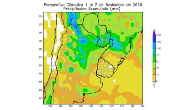 Desarrollo del pronóstico agropecuario del 8 al 14 de noviembre de 2018 para Argentina