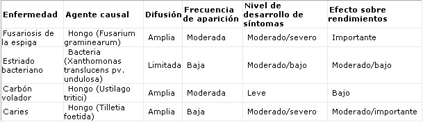 Cuadro 2. Enfermedades de la espiga del trigo más frecuentes e importancia relativa