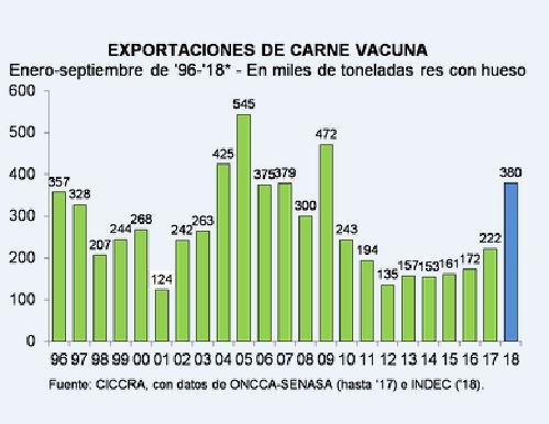 Las exportaciones fueron de 429,8 mil tn r/c/h en los primeros diez meses de 2018, una suba de 69,5% interanual.