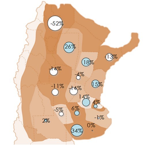 (-2%), Laboulaye (-11%) y Pilar (-37%). En cambio, evidencia rindes por encima