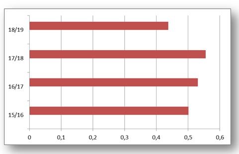 Stock/consumo de trigo en EE.UU. En porcentajes. Datos de USDA