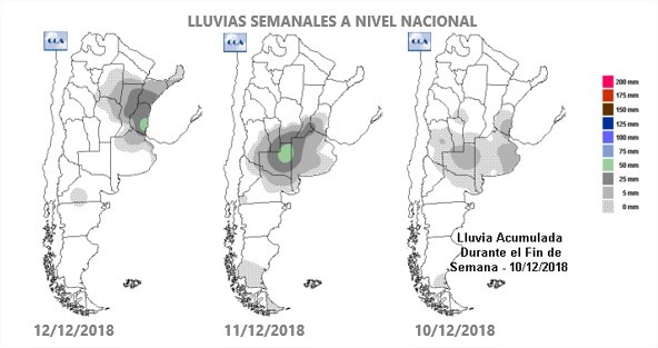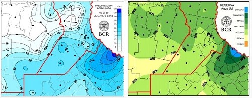 Acumulados por encima de los 80 mm recibió el noreste bonaerense del 9 al 12 de diciembre. Ramallo acumuló 89,4 mm y Pergamino 88 mm. La mitad de la región superó los 30 mm. Por fortuna, la tormenta esquivó el centro sur de Santa Fe, la zona que recibió los más de 300 mm en el mes de noviembre. El este cordobés es la zona con los menores registros, incluso en el centro de los departamentos de Unión y Marcos Juárez prácticamente no se registraron precipitaciones. En el sudeste provincial la humedad edáfica comienza a escasear. Para este jueves 13 y viernes 14 los pronósticos de lluvias intensas amenazan con dejar importantes milimetrajes en la región.