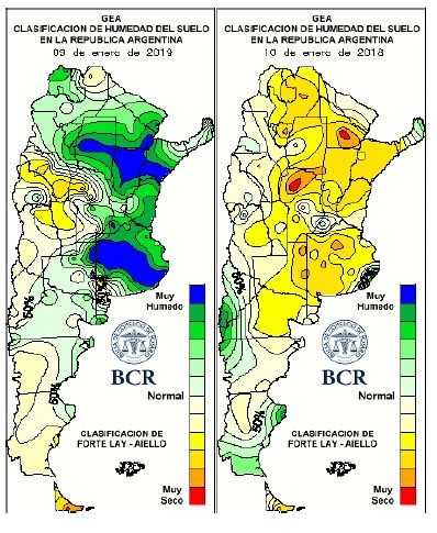Grandes eventos de lluvias siguen acompañando el crecimiento y desarrollo del maíz, sobre todo en la región pampeana, donde las siembras tempranas atraviesan sus períodos críticos en condiciones excelentes a muy buenas. Un evento muy destacado y oportuno fueron las precipitaciones del 26 de diciembre al 3 de enero (2019). Luego, siguieron las lluvias del 4 al 7 de enero y ya se está desarrollando otro evento que ayer dejó lluvias muy intensas sobre el norte del país. Esto pone en evidencia que la presión hídrica será muy importante esta vez.