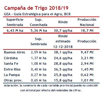 Restan aún por cosechar en Buenos Aires el 40% del área triguera. De todas maneras, con el avance de las labores de recolección de trigo, se afianzan los rendimientos estimados, manteniendo los resultados, con un promedio nacional de 30,7 qq/ha, aunque seguirán las revisiones. Por consiguiente, se sigue estimando la producción de trigo 2017/2018 en 18,7 M Tn