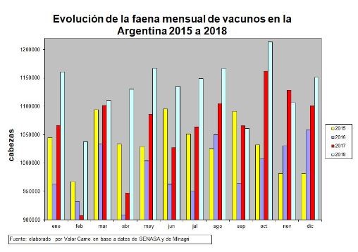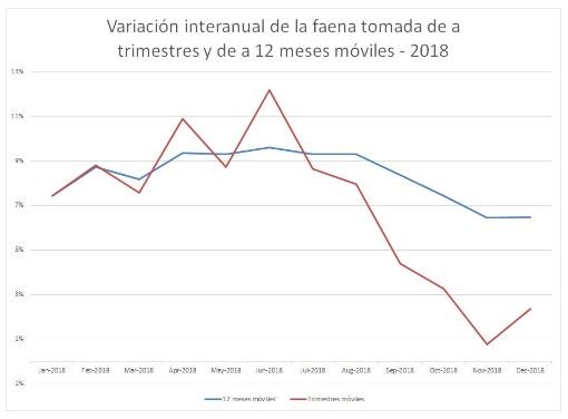 Primero, es necesario terminar de plasmar los números de 2018. En diciembre pasado se despacharon a faena 1,15 millones de cabezas, 4% más que en noviembre y 5% más que en diciembre anterior. Pero si se ajusta por el número de días hábiles, la faena fue 1% menos que en el último mes de 2017.