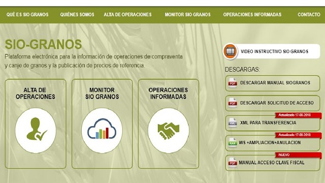 En el marco del Sistema de Información de Operaciones de Granos, SIO-GRANOS, la Secretaría de Gobierno de Agroindustria, a través de la Subsecretaría de Mercados Agropecuarios, implementó mejoras en el sistema de cargas de datos, tendientes a simplificar las mismas a los operadores, como así también mejorar la calidad de la información.