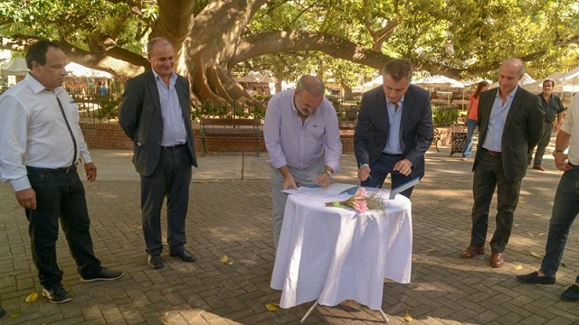 El secretario de Gobierno de Agroindustria, Luis Miguel Etchevehere y el ministro de Ambiente y Espacio público de CABA, Eduardo Macchiavelli, firmaron en la Plaza Vicente López un Convenio de Colaboración que tiene por objetivo fomentar el desarrollo de los pequeños agricultores del país y beneficiar a los consumidores.