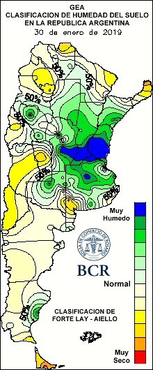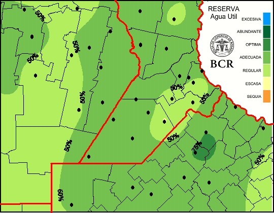 Un 55% de los lotes de soja de primera se los considera en muy buenas condiciones. Casi una semana sin lluvias, con sol y viento, colaboraron en bajar la presencia de agua en lotes encharcados, bajar el nivel de las napas y recuperar el estado de la soja. Pero aún queda un 10% en condiciones regulares a malas, afectadas por los excesos. La mayor parte de los lotes están iniciando el llenado de granos. Las enfermedades de fin de ciclo y la presencia de chinches comienzan a ser focos de preocupación. Muchos ya han comenzado los tratamientos para su control.