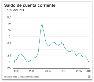 Por ejemplo, con el gráfico podemos ver cuán preocupante era el saldo de la balanza comercial, ya que el valor del dólar fue quedando rezagado. Este cuadro fue preparando la bomba que explotó en 2018.