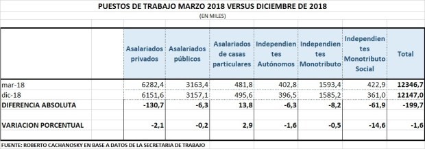 En efecto, la recesión comenzó en abril de 2018. Si uno compara la evolución del empleo público y del empleo privado en relación de dependencia entre marzo de 2018 y diciembre del mismo año, se encuentra con que el sector privado perdió 130.700 puestos de trabajo de acuerdo a los datos que acaba de publicar la secretaría de trabajo, en tanto que el sector público consolidado perdió solo 6.300 puestos