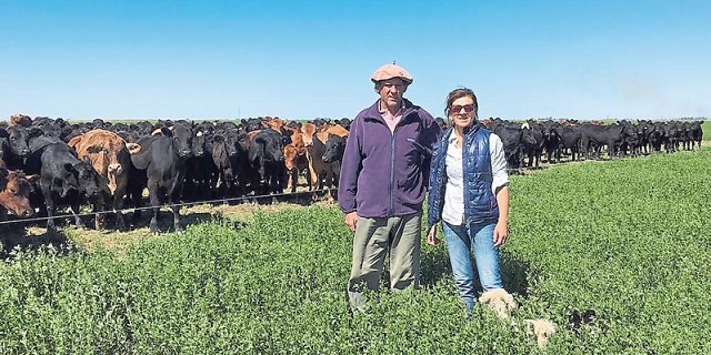Hoy tiene 115 hectáreas con pasturas de alfalfa divididos en seis potreros más un potrero de 20 hectáreas de sorgo para rotación, usado como back up y emergencia. El productor engorda 750 animales, 11 por hectárea, con una ganancia promedio diaria de 800 gramos por animal. La rutina de Imaz comienza a la seis de la mañana con unos mates en la cocina de su casa junto a Encarnación, para luego salir al campo.