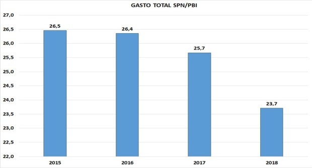 El gasto del Sector Público Nacional incluidos los intereses de la deuda pública y excluidos los gastos de las provincias y de los municipios, bajó de 26,5% del PBI en 2015 que dejó el kirchnerismo a 23,7% en 2018, una reducción de 2,8 puntos del PBI. Aquí no incluyo el gasto cuasifiscal del BCRA que creció en 1,6 puntos del PBI entre 2015 y 2018. De manera que, en principio, el gobierno podría mostrar estos números como un logro de su gestión y taparle la boca a todos los que decimos que hay que bajar el gasto público.