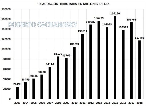En términos de recaudación tributaria, en 2002 los ingresos fiscales fueron U$S 16.182 millones y en 2015 la recaudación llegó a los U$S 166.150 millones, en otras palabras, el kirchnerismo aumentó sus ingresos fiscales por retenciones y matando con impuestos a la gente, en U$S 149.968 millones.