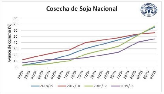 Volvió a subir la estimación de mayo de soja, ya con un 65% de avance de cosecha. Se afirma el rinde nacional récord, ahora con 33,7 qq/ha, medio quintal más que en el informe anterior. El porqué de esta suba, 1 M de tn más que hace un mes, es explicado en gran parte por los resultados de las cosechadoras cordobesas. De todas maneras, es importante aclarar que sigue habiendo una situación muy compleja en la provincia de Chaco.