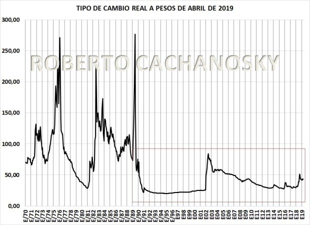 Luego del plan Bonex en diciembre de 1989, el tipo de cambio larga en $ 55 actuales se llega con un tipo de cambio de $ 30 actuales en febrero de 1991 y se entra en la convertibilidad a $ 27 actuales.