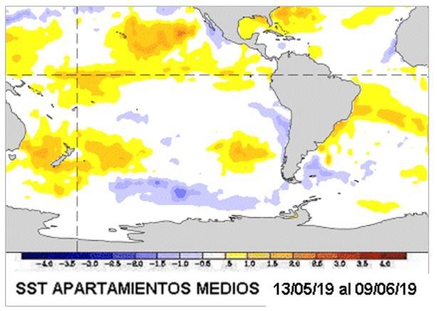 El contexto de escala planetaria se acopla con la escala regional para definir un escenario donde las chances de que el invierno evolucione con temperaturas medias por encima de los valores normales y con mayor aporte pluvial, se vuelve más probable.