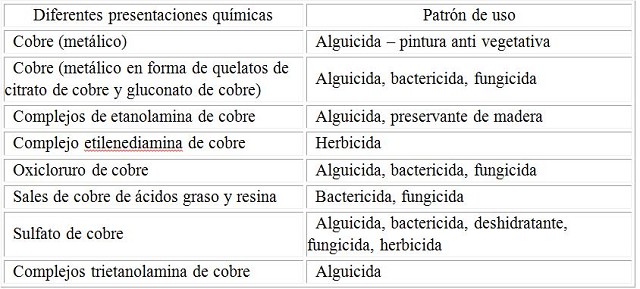 El COBRE tiene acción bactericida, fungicida y alguicida (Tabla 1).