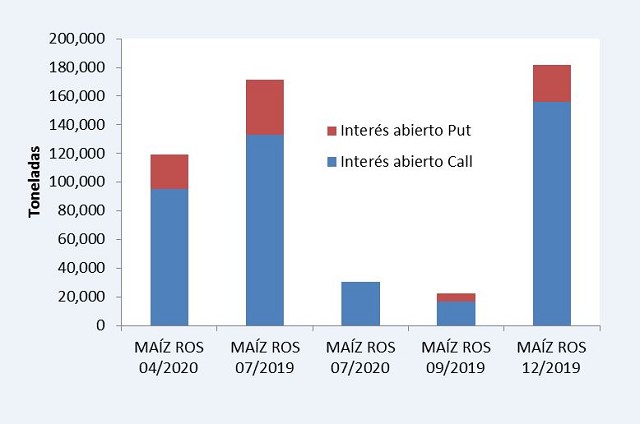 Gráfico 8: Interés abierto en opciones sobre maíz diciembre el 19.06.19 en MATba Rofex.