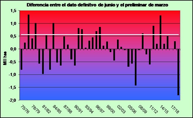 Por su parte, el dato más contundente es que esta merma es la más significativa en términos históricos, superando las 1.4 mill has del ciclo 07/08.