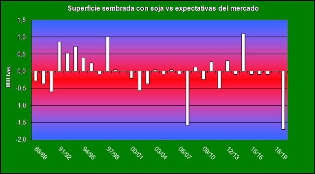 En otro orden, tal como puede apreciarse en el gráfico 2 este dato ha ido a contramano de lo observado en el pasado reciente, toda vez que en 6 de las anteriores 7 campañas el organismo ha publicado un salto en la superficie (y en la restante no se han registrado cambios).
