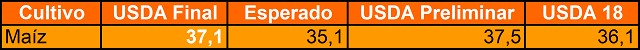 Maíz: 2 mill has de diferencia entre lo informado y lo esperado por los privados resulta un dato negativo para el mercado, reflejando que las pérdidas de área en EEUU por el exceso de lluvias han sido limitadas. No obstante esto, los números continuarán mostrándose algo ajustados.