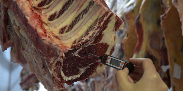 con sus exportaciones de carne bovina, madurada y desosada, pero también con