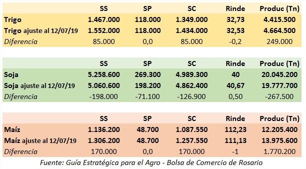 y maíz. La superficie de trigo se ajusta en 1,7 M ha y la de maíz en 1,4 M ha.